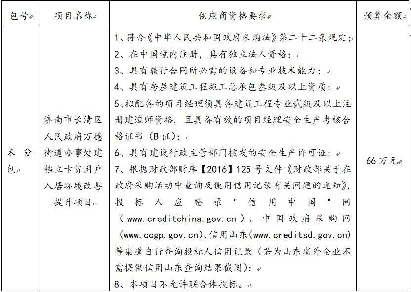 二、采購項(xiàng)目名稱:濟(jì)南市長清區(qū)人民政府萬德街道辦事處建檔立卡貧困戶人居環(huán)境改善提升項(xiàng)目