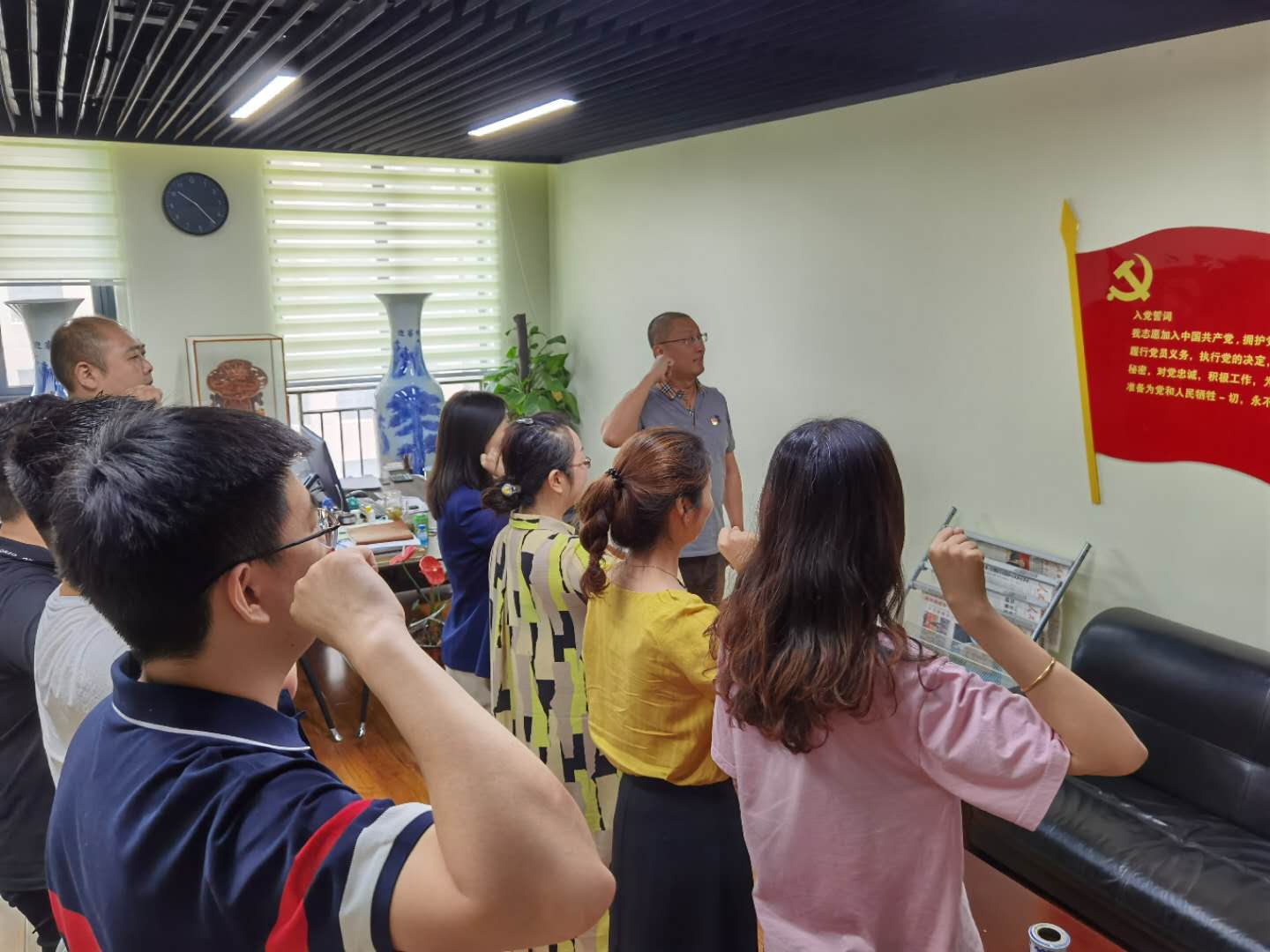 為紀念中國共產黨成立99周年,進一步弘揚黨的優(yōu)良傳統,不斷增強支部凝聚力、號召力和戰(zhàn)斗力,激勵廣大黨員堅定理想信念,肩負時代使命,我支部組織全體黨員面對黨旗重溫入黨誓詞,重溫申請入黨時的思想激情和奮斗追求,回顧入黨宣誓時的莊嚴承諾和堅定決心,喚醒先進意識,增強黨性意識,以更加飽滿的熱情發(fā)揮先鋒模范作用,以更加昂揚的斗志積極踐行誓言,永葆共產黨員的政治本色。