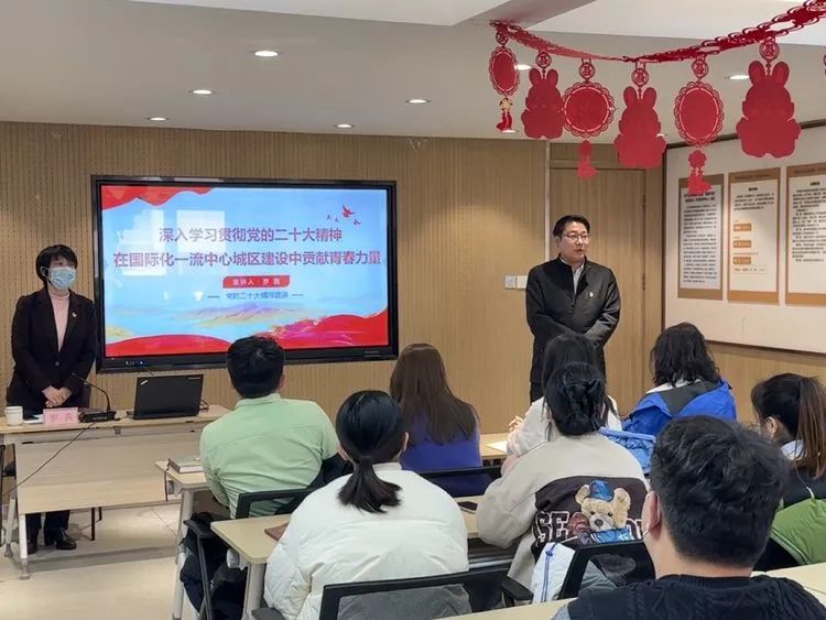 根據(jù)區(qū)委統(tǒng)一安排部署,為進(jìn)一步激勵青年黨員全面學(xué)習(xí)領(lǐng)會黨的二十大精神,2月15日下午,團(tuán)區(qū)委書記、區(qū)委宣講團(tuán)成員羅茜到甸柳第一社區(qū),以《深入學(xué)習(xí)貫徹黨的二十大精神 在國際化一流中心城區(qū)建設(shè)中貢獻(xiàn)青春力量》為題,為大家?guī)砹艘粓龉奈枞诵?、凝聚共識的宣講。